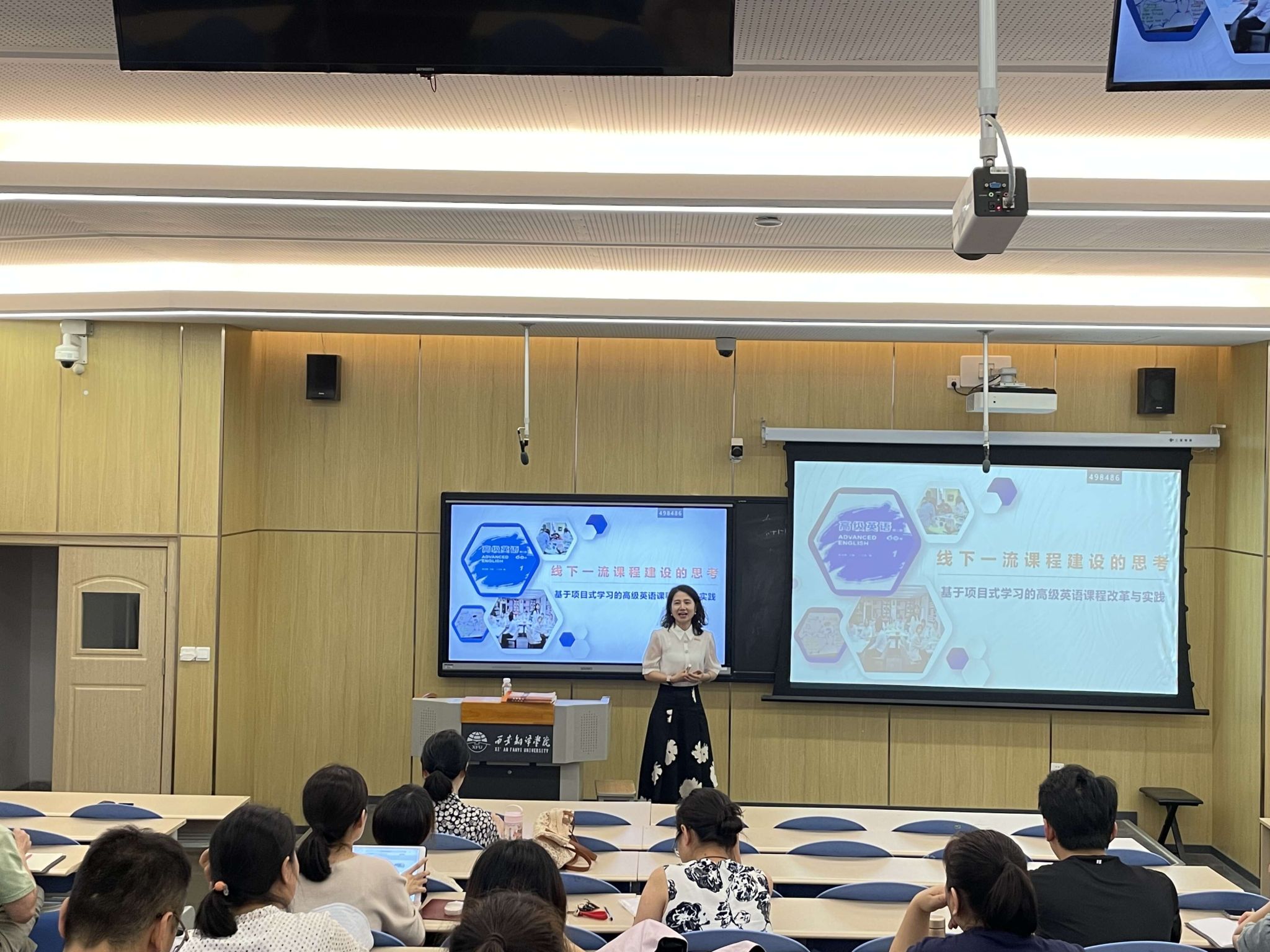 7月12日上午,伟德bv1946官网邀请教务处处长秦晓梅作题为“线下一流课程建设的思考——基于项目式学习的高级英语课程改革与实践”讲座。伟德bv1946官网全体教师参加讲座,公司副经理吴震主持讲座。