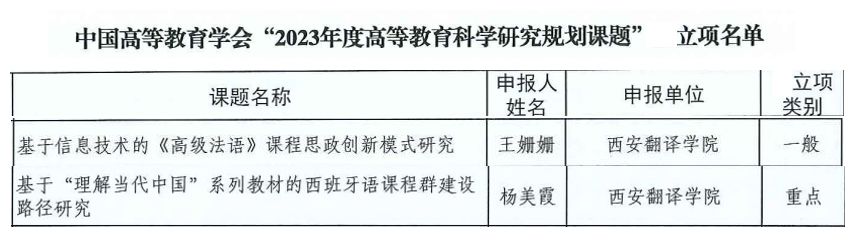 近日,中国高等教育学会公布了“2023年度高等教育科学研究规划课题”立项名单,公司王姗姗老师和杨美霞老师获批立项。