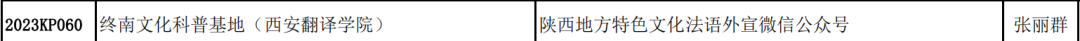今日,陕西省社会科学界联合会公布了“2023年度陕西省社科普及资助项目”立项名单,全省共立项60项。其中,公司张丽群老师主持的项目《陕西地方特色文化法语外宣微信公众号》(项目编号:2023KP060)获批立项。