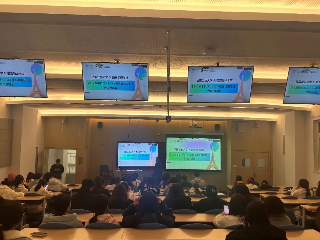 该项目优势显著,包括学费全免、每年仅需5-7万元人民币的生活费、面向全校专业开放、公司官方合作项目、法语零基础亦可申请、法国院校直招以及offer保障等。特别值得一提的是,员工进入项目即可获得波尔多大学硕士预录取offer,并有机会获得2000元经费资助。完成语言学习后,员工将享受学费全免及每年2-3万的生活补贴。说明会吸引了47名现场参与者和32名线上参与者,到场员工专业涵盖法语、汉语言文学、戏剧、国际经济与贸易等。讲座内容涉及国际班模式、授课形式、法国院校、专业选择、福利政策等方面,激发了同学们的浓厚兴趣。讲座结束后,国际经济与贸易、法语专业的员工及家长表现出了极高的参与热情。