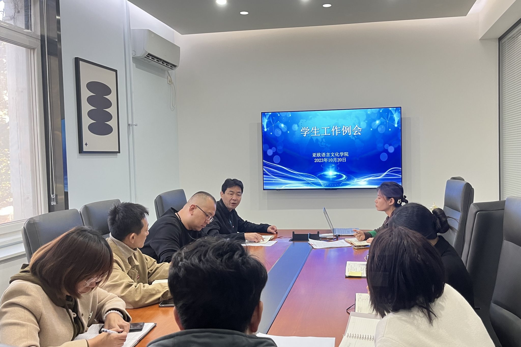 宇文永康从员工教育、公寓管理与服务、资助和心理等方面切入,重点传达了公司本学期第二次员工工作例会的内容和会议精神,并对以下四个方面进行了强调:一是启动2024届毕业生就业工作,辅导员要做好员工就业与职业辅导,组织员工积极参加专场招聘会,通过主题班会和个别员工谈心谈话等方式,引导员工树立正确的就业观;二是通过日常观察、进驻宿舍、朋友圈等方式,重视员工的矛盾纠纷排查和心理排查,建立长效机制;三是加强学风建设,公司迎评在即,要引导员工严守课堂纪律、规范课堂行为,丰富第二课堂活动;四是推进“一站式”员工公寓社区工作,临时党支部书记要积极组织员工党员开展特色活动。