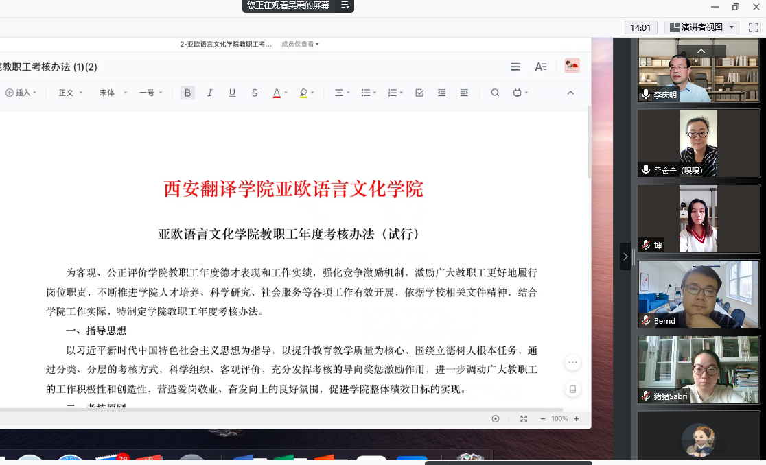最后,李经理指出,新的一年开始了,新一轮的各项科研、教学质量工程类项目都将开展申报工作,各部门应积极准备,提前规划落实,特别是日语、法语两个省级一流专业建设点更要投入精力,对标一流专业建设指标,思考如何建设,如何验收,如何尽早建设成为省级一流专业。