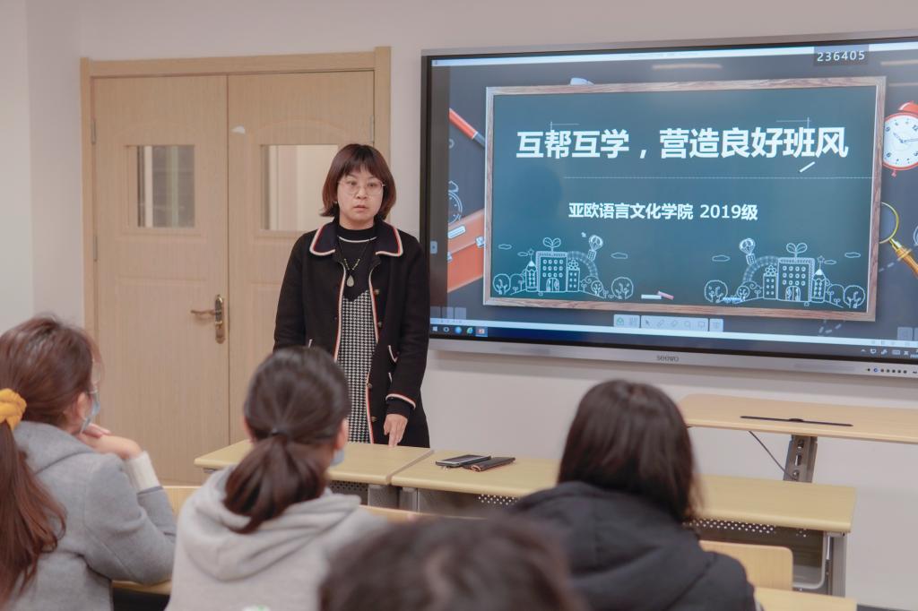最后,辅导员蒋敏总结讲话,首先她代表2019级四名辅导员向所有班委表示感谢。其次她表示:营造良好学风离不开每个同学的共同努力每个班委都应发挥自己的主观能动性,团结协作。使班级建设更上一层楼。最后她寄予所有班委在搞好班级工作的同时也要注重提高学习成绩,做到全面发展。