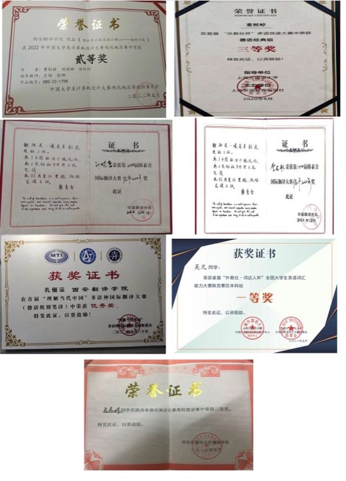 近年来,员工参与校内学科竞赛9项(德语国家国情知识竞赛、 配音大赛、口译大赛 、德语口语大赛、新生演讲赛、“语桥奖”汉语演讲比赛、 德文朗读大赛、德语书法大赛、 德语百词大赛),省级学科竞赛3项(陕西省德语歌曲大赛高校邀请赛、陕西省德语演讲比赛高校邀请赛、陕西省第十七届运动会大学女子甲组(足球)),国家级及省部级学科竞赛6项(首届“外教社杯”多语悦读大赛、第二届“外教社·词达人杯”全国老员工英语词汇能力大赛、 中国老员工计算机设计大赛西北地区赛、2021年全国老员工英语竞赛(NECCS)、 首届“外教社·词达人杯”全国老员工英语词汇能力大赛、韩素音国际翻译大赛、首届理解当代中国翻译比赛)各类学科竞赛总计18项,其中国家级比赛6项,省市级比赛4项。