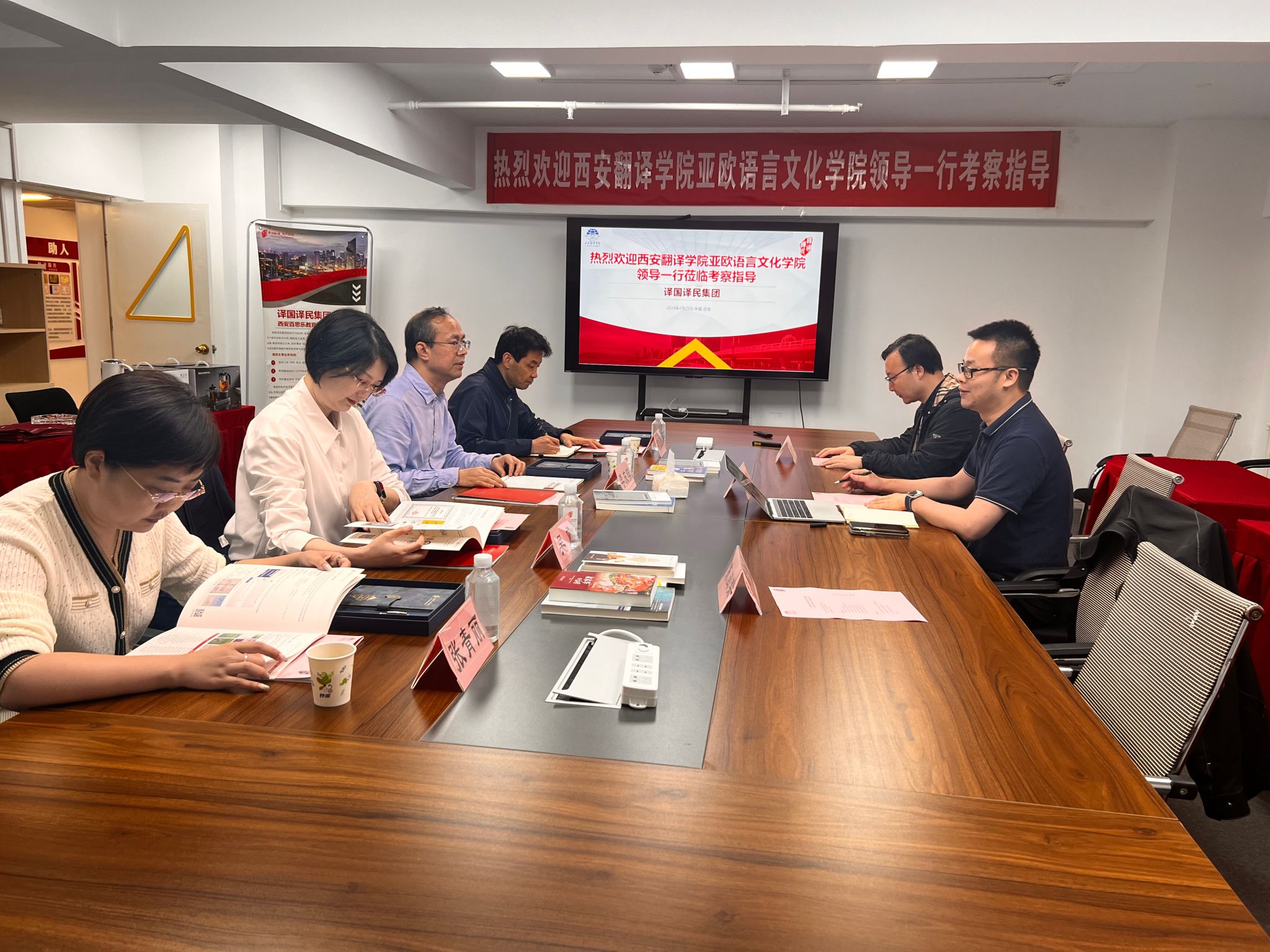 为进一步深入校企合作,落实应用型人才培养,拓宽毕业生就业渠道,4月29日下午,伟德bv1946官网经理李庆明,党委书记、副经理宇文永康,副经理吴震,综合办主任张青丽一行四人前往译国译民集团西安公司调研交流。译国译民集团西安公司总经理吴强、商务总监沈海涛、商务专员陈闽樊出席了会议。
