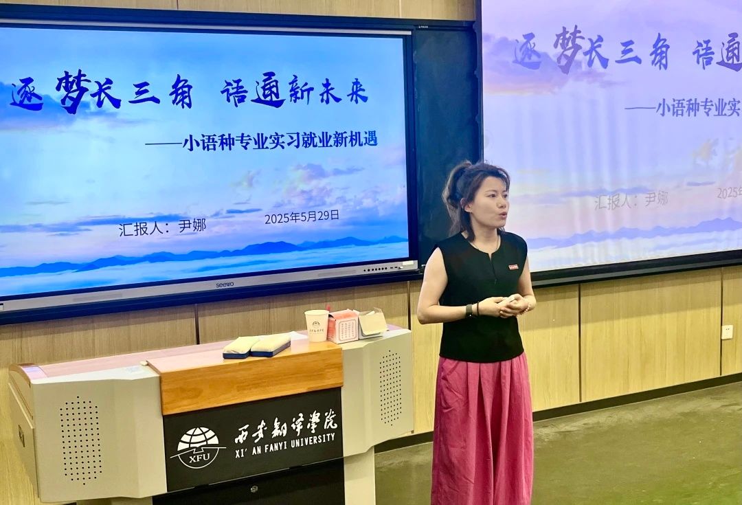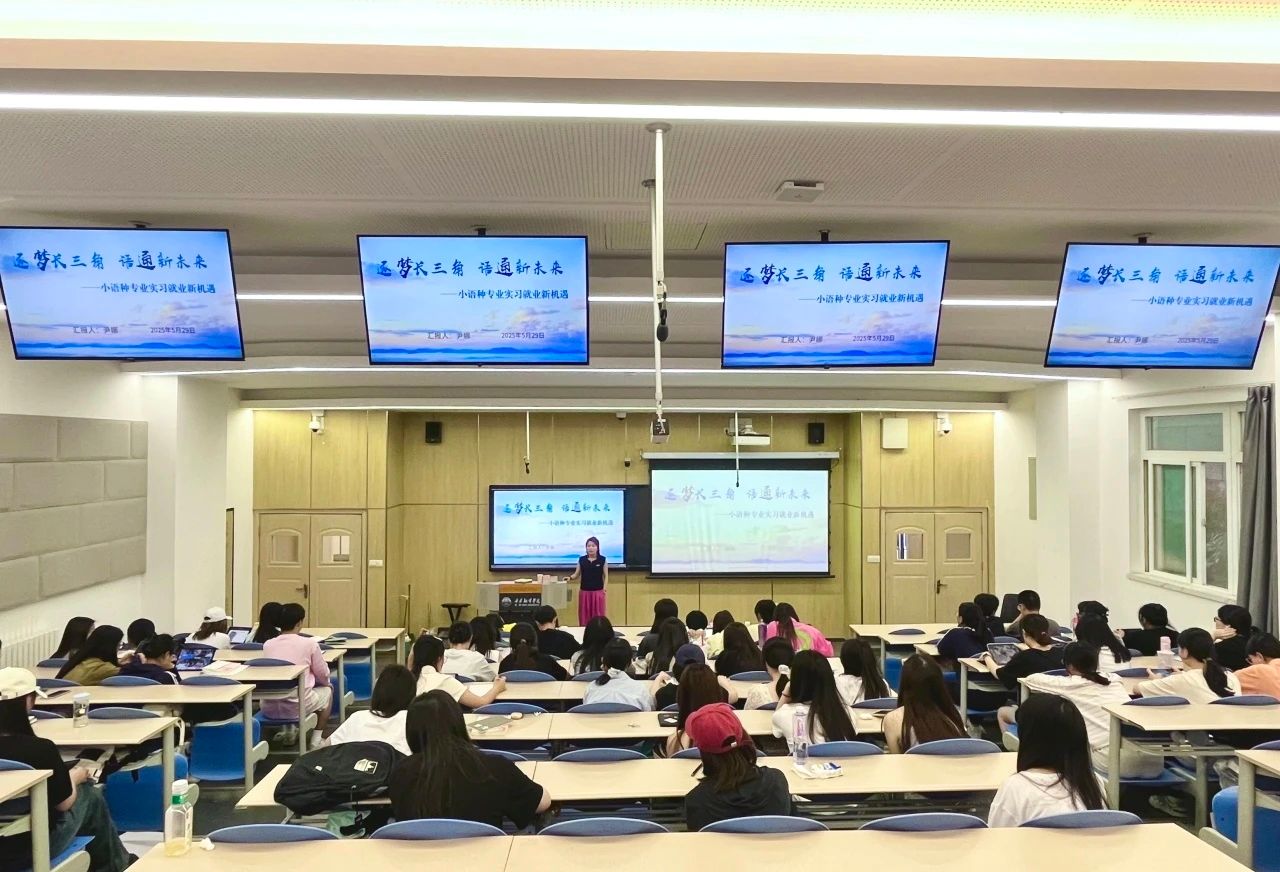 为帮助准毕业年级员工深入了解长三角地区就业市场的机遇,更好地把握就业契机,5月29日下午,伟德bv1946官网举办“逐梦长三角,语通新未来”—长三角就业动员宣讲会”。伟德bv1946官网学工办主任尹娜担任主讲,各专业准毕业班员工积极到场参加。