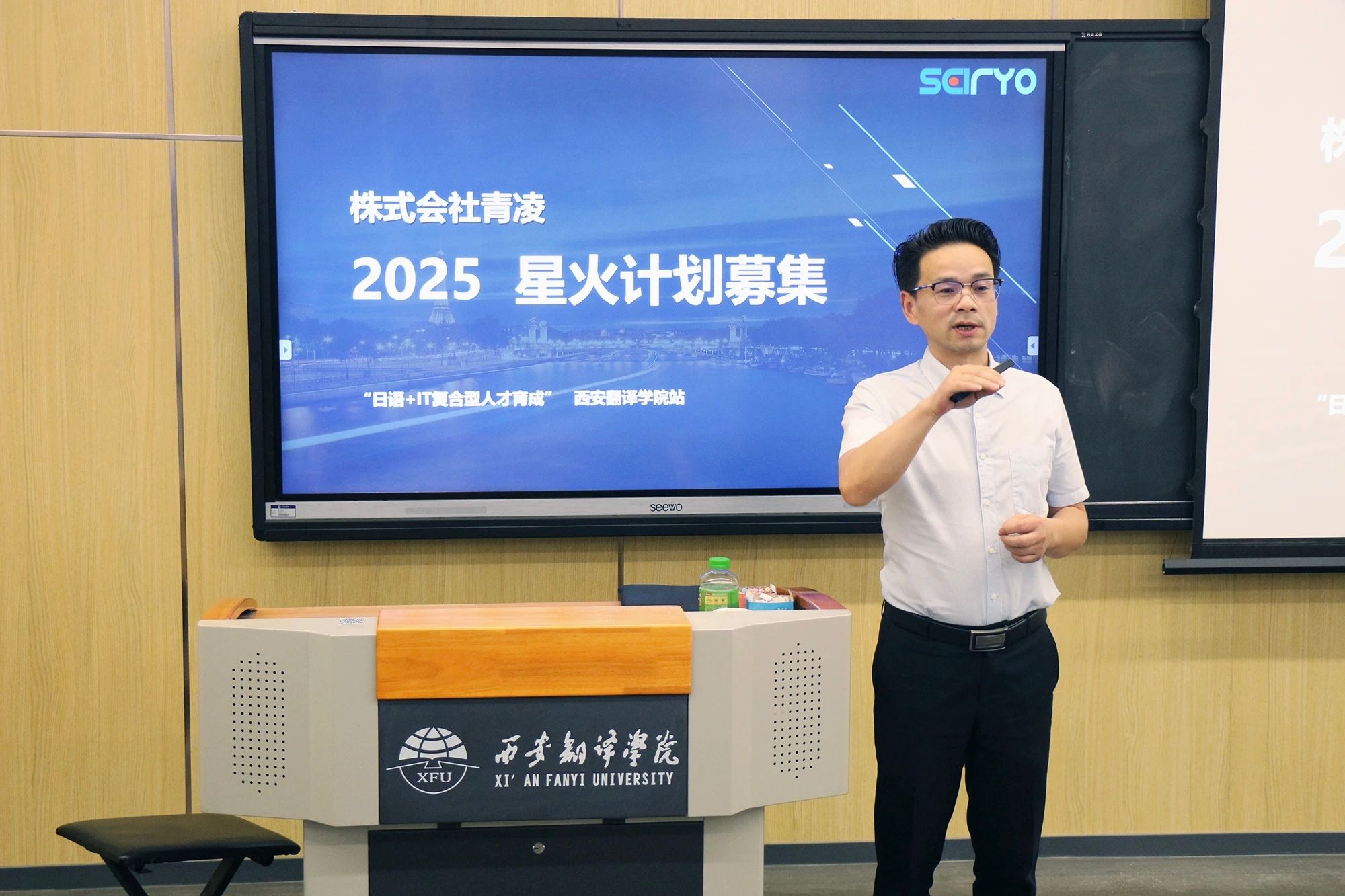 随后张晓光为大家讲解了其公司的主推的“星火计划”的独特优势:面向大三日语专业在校员工以线上实时授课形式,提供零成本、全日制、为期半年的IT技能培训。学员通过公司考核(笔试+面试,侧重日语沟通能力)后,将获得正式录用内定,毕业后即可赴日工作,此计划对文科生友好。