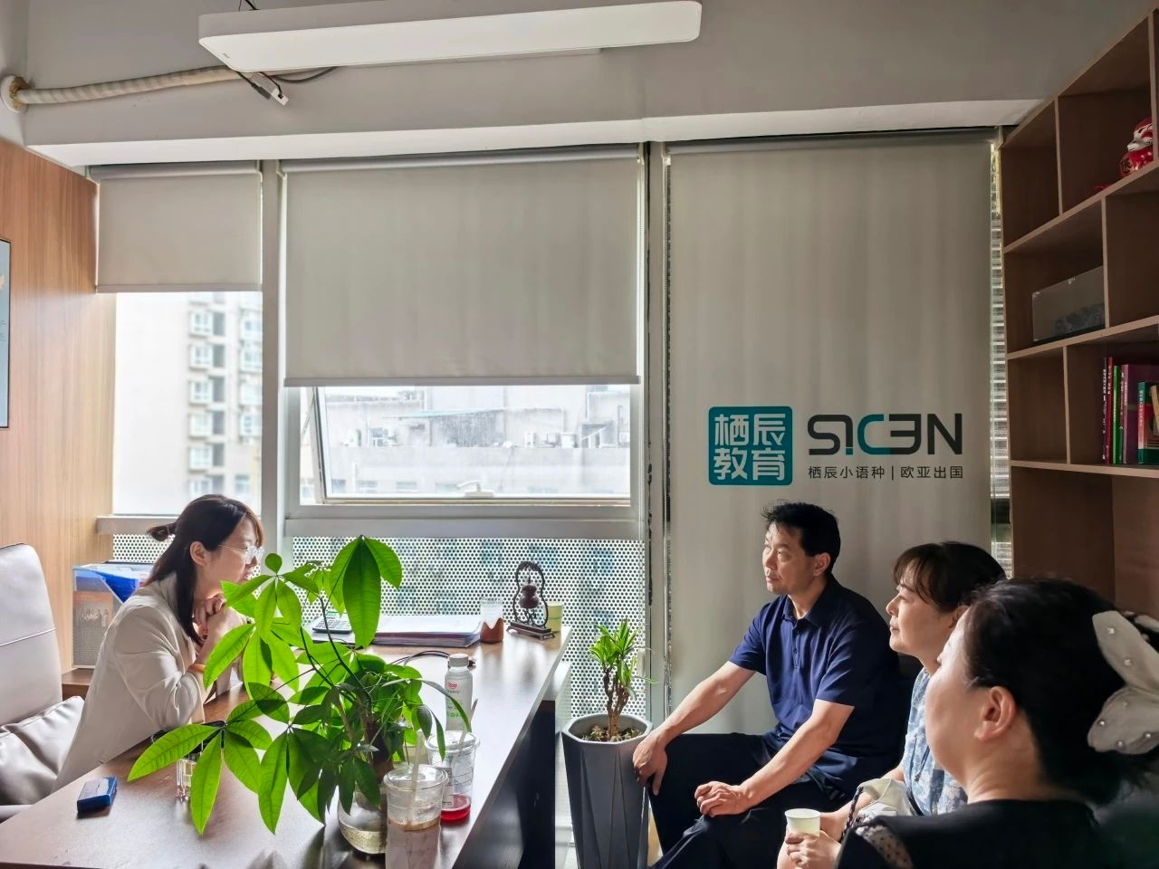 宇文永康介绍了公司的发展概况,提到公司始终注重语言教学与行业实践的紧密结合。他表示,希望通过与栖辰教育的合作,让员工在留学咨询、语言服务等真实场景中切实提升实战能力。此次访企拓岗,正是为了与行业头部机构开展深度对接,了解留学服务与语言培训领域的人才需求标准,既能为毕业生争取更多实习就业机会,也能为公司专业建设提供宝贵的实践参考。