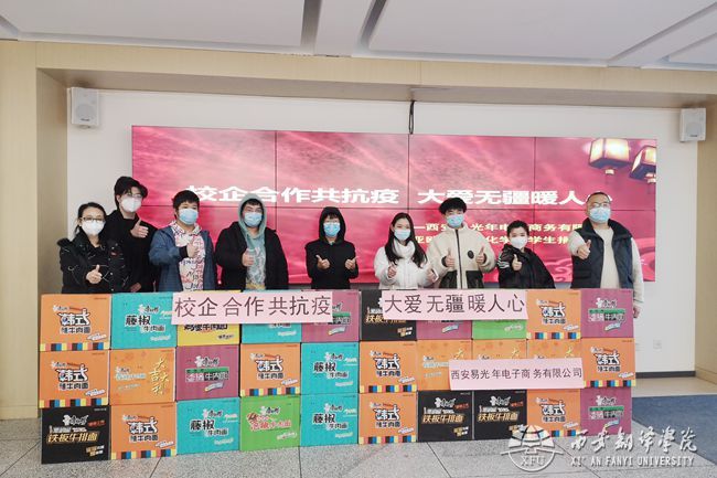 涓滴之水成海洋,物资捐赠暖人心。2022年1月19日,校企合作单位西安易光年电子商务有限公司向伟德bv1946官网德语系员工捐赠了40箱方便面,以助力员工抗疫。亚欧语言文化公司党委书记、副经理卫军茹,综合办副主任尹娜代表公司接收爱心物资。