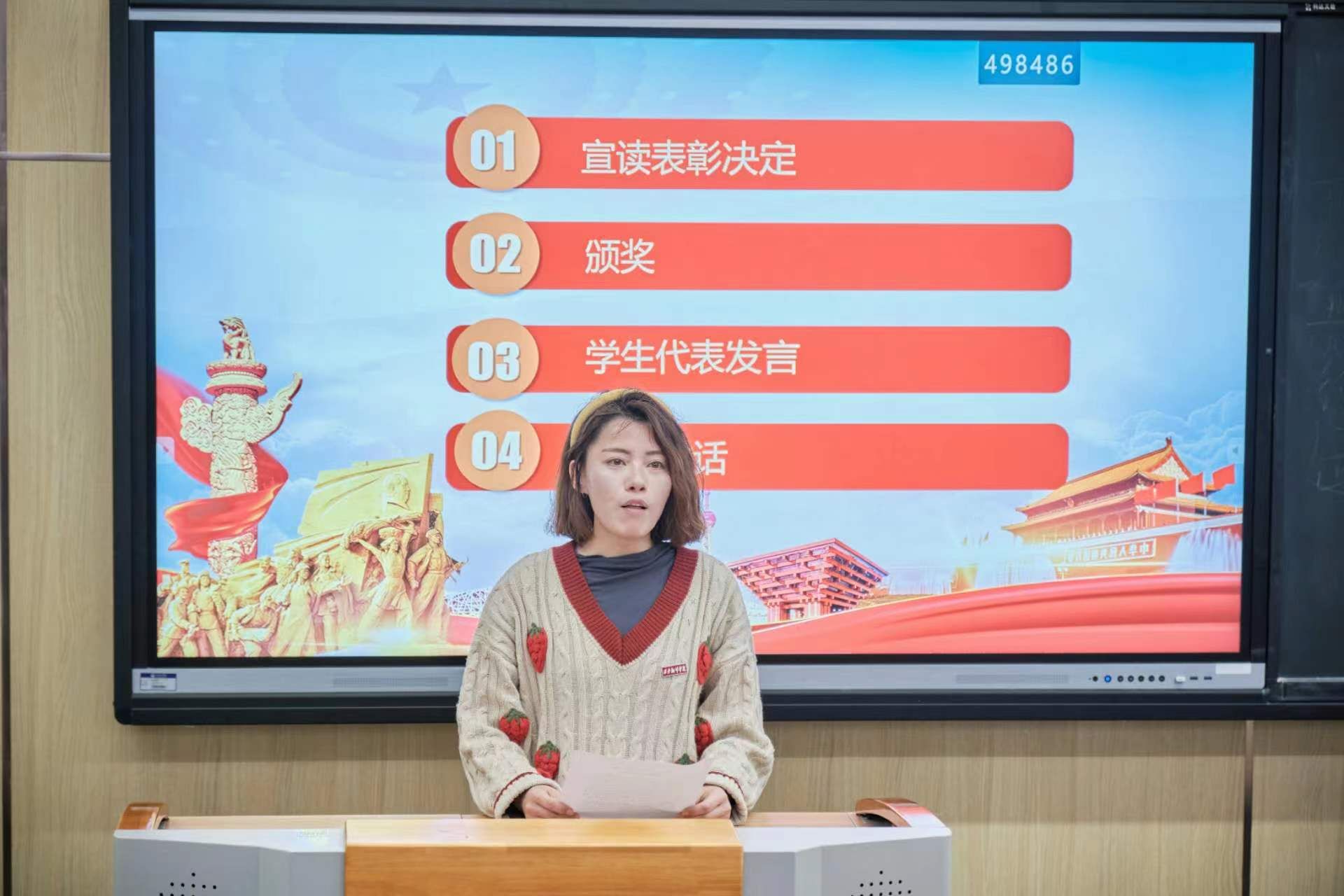 尹娜宣读了《伟德bv1946官网关于表彰2021-2022学年学风建设先进集体和先进个人的决定》,对174名优秀员工及5个先进班集体进行表彰。她号召全体员工向先进看齐,秉承西译“读书、做人、变革、奋进”的校训,不断创新、学习、思考,提升和完善自我。