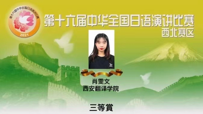 2021年11月27日,第十六届中华全国日语演讲比赛西北赛区预赛在西安外国语大学举办。公司伟德bv1946官网2020级日语专业肖雯文同学在比赛中荣获三等奖。