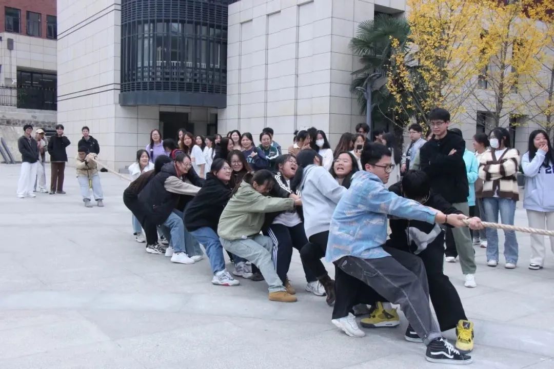 各班参赛的同学们谨遵经理的教诲,秉持着友谊和安全第一,比赛第二的原则,在赛场上尽情的挥洒汗水,紧握长绳,拼尽全力,为自己班级争光。