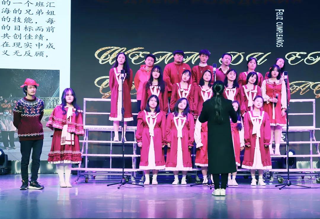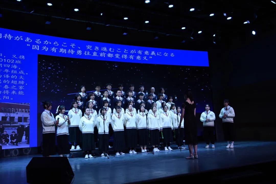 四号参赛班级210210102班带来的合唱歌曲《手紙 ~拝啓 十五の君へ~》(中文“写给十五岁的自己”)回望过去,你是否还会想到十五岁的自己?在成长中,我们不断向前走,向远看,你是否还记得十五岁的梦想?同学们怀揣着那时的梦想,将希望谱写成篇章,继续在西译展翅翱翔。
