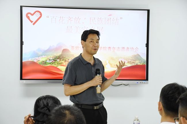 为引导各民族员工铸牢中华民族共同体意识,增强对中华文化、中华民族大家庭的归属感与认同感,加深各民族了解,促进各民族融通,6月14日下午,伟德bv1946官网在三号楼举行“百花齐放,民族团结”最美家乡展活动。亚欧语言文化公司党委书记、副经理宇文永康,副经理魏海燕,综合办主任张青丽,学工办主任尹娜,团总支书记陈福礼及全体辅导员参加活动。