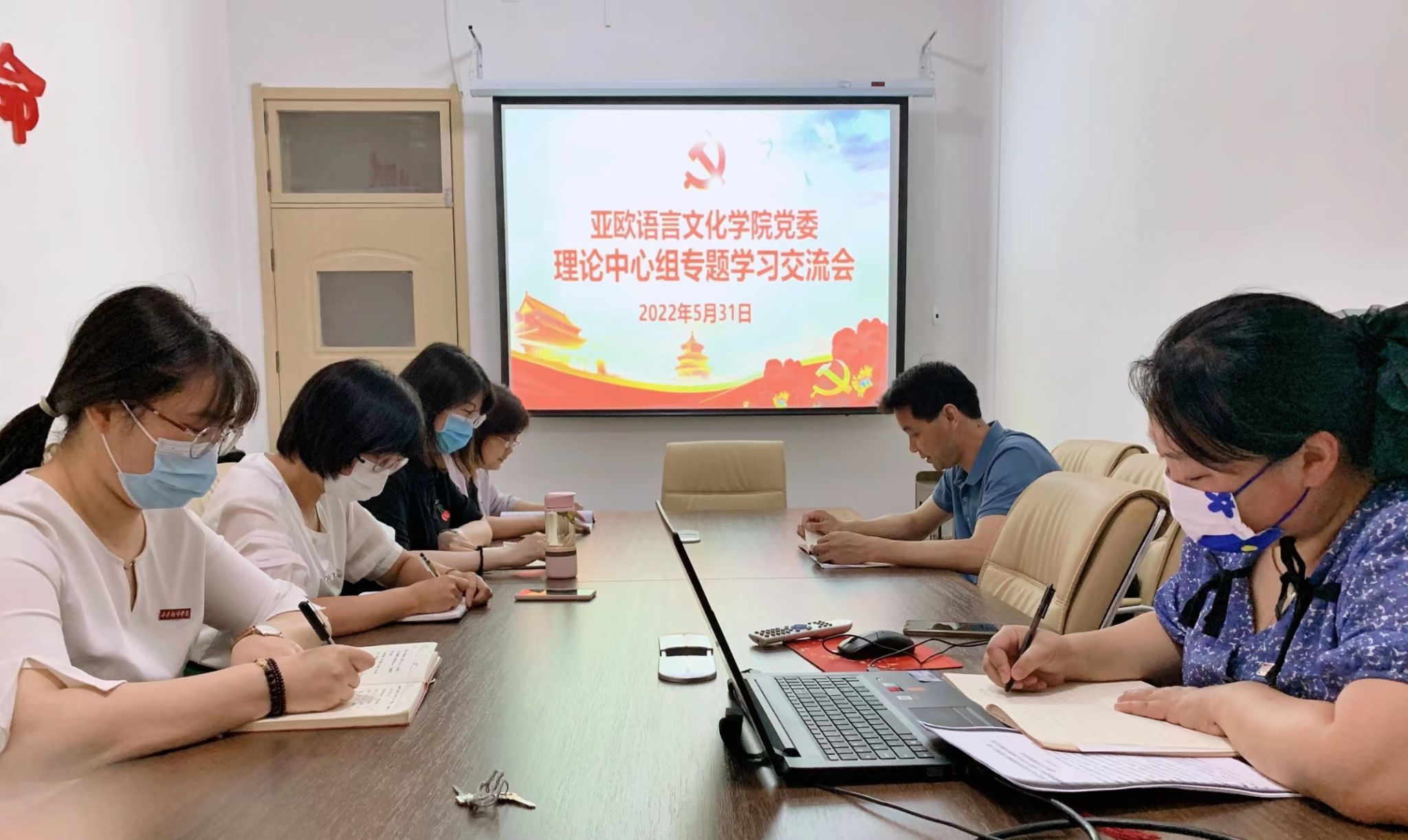 2022年5月31日,亚欧语言文化公司党委理论中心学习组在西区三号楼一层会议室召开学习十九届六中全会会议精神专题学习交流会。会议由亚欧语言文化公司党委书记宇文永康主持,亚欧党委理论中心学习组成员参加此次会议。