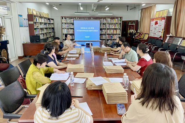6月30日,伟德bv1946官网邀请西安外国语大学日语专业吴少华教授、德语专业张世胜教授、法语专业向征副教授、西班牙语专业曹韦副教授、朝鲜语专业孙金秋教授以及陕西师范大学俄语专业孟霞教授,对2023届本科毕业论文进行复查。