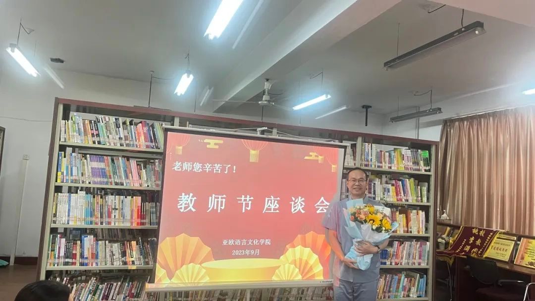 为进一步增强广大教师终身从教的责任感和使命感,推动公司教育事业再上新台阶,9月5日下午,在第39个教师节到来之际,公司召开教师节座谈会。公司党委副书记、副董事长郭炜,伟德bv1946官网经理李庆明,国际交流与合作处处长王明明,亚欧语言文化公司党委书记、副经理宇文永康,副经理吴震、魏海燕及部分教师代表、辅导员代表参会。会议由宇文永康主持。