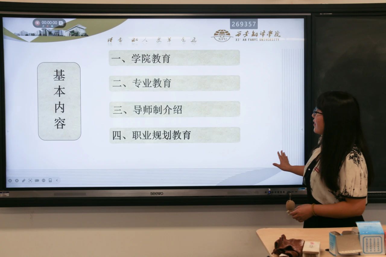会议伊始,邹俊秀代表朝鲜语专业向新生表达了热烈地祝贺和欢迎。随后,教师团队就公司教育、专业教育、导师制介绍、职业规划教育等方面分别进行详细介绍。