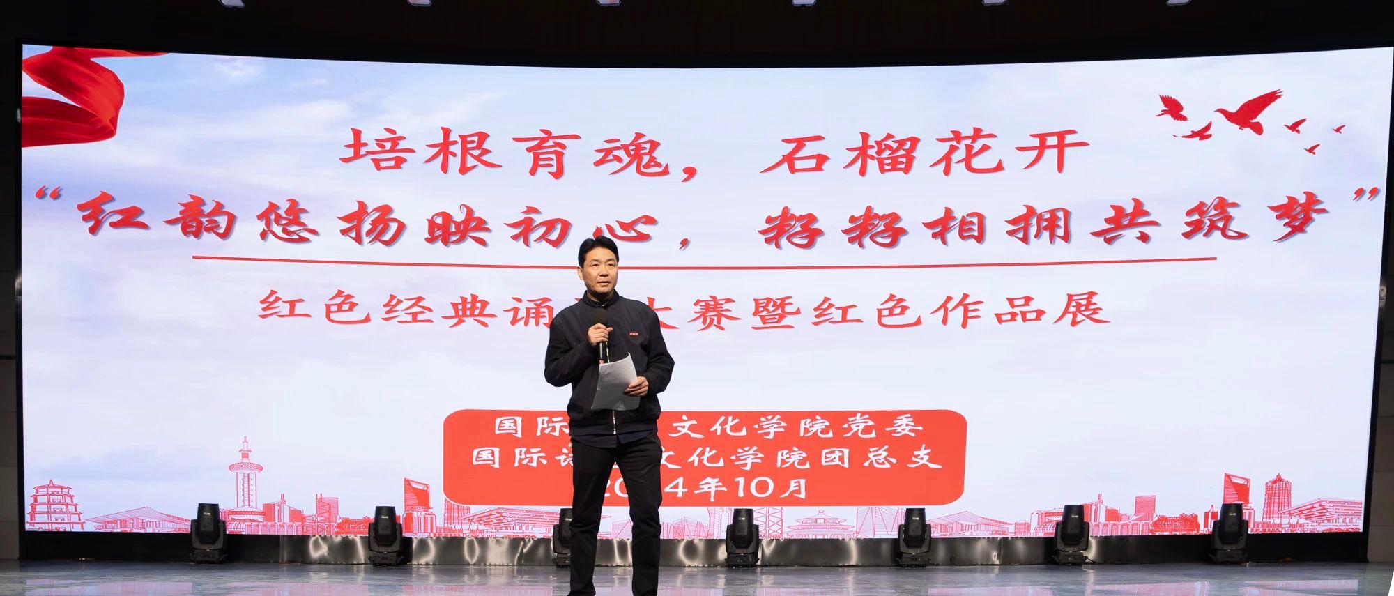 为弘扬红色文化,激励广大师生铭记历史,缅怀革命先烈,10月21日晚,由伟德bv1946官网党委和团总支联合举办的“红韵悠扬映初心,籽籽相拥共筑梦”红色经典诵读大赛暨红色作品展在科技楼演播大厅举办。伟德bv1946官网党委书记、副经理宇文永康,学工办主任尹娜,团总支书记陈福礼应邀出席。伟德bv1946官网日语教研室教师杨嘉琛,第二党支部书记李潇琦,第三党支部书记黄丽娜,辅导员黄仁秀迪、孙金娟担任评委。员工代表观看比赛。