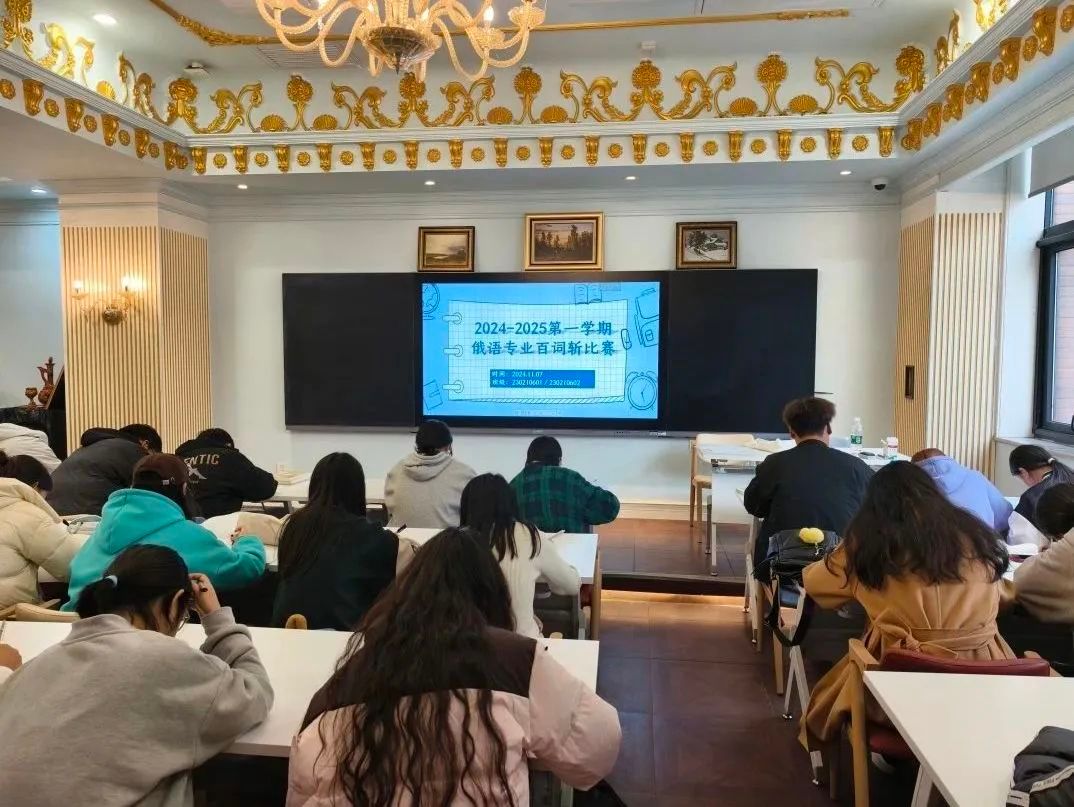 11月7日下午,伟德bv1946官网俄语专业在俄罗斯文化体验馆举办了2024~2025第一学期百词斩比赛,参赛选手为2023级全体俄语员工,俄语教研室张力心老师和杨思琪老师主持了本次比赛。