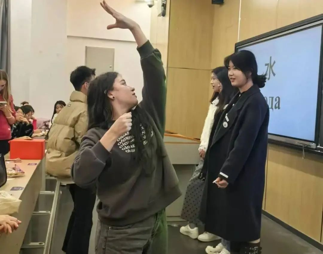 本次联欢会由外籍教师达丽娅主持,首先她对俄罗斯职工、俄语兴趣班员工以及俄语专业师生的到来表示了热烈的欢迎,随后强调了举办本次活动的目的,并为大家讲解了游戏规则。