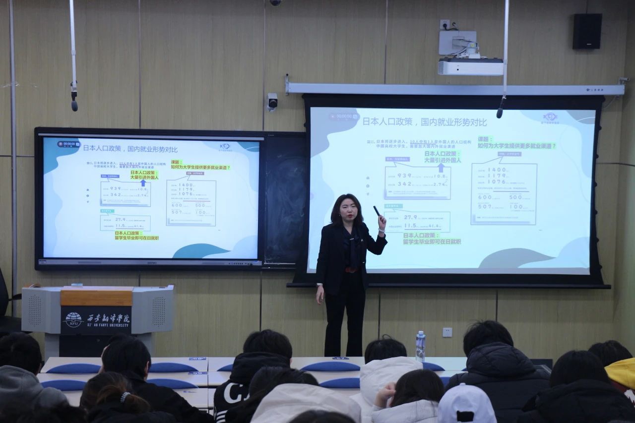 为了提升员工的职业规划能力,拓展校企合作路径,12月10日下午,伟德bv1946官网邀请新干线教育集团的李佳老师,为日语专业的员工进行了一场日语职业规划专题讲座。