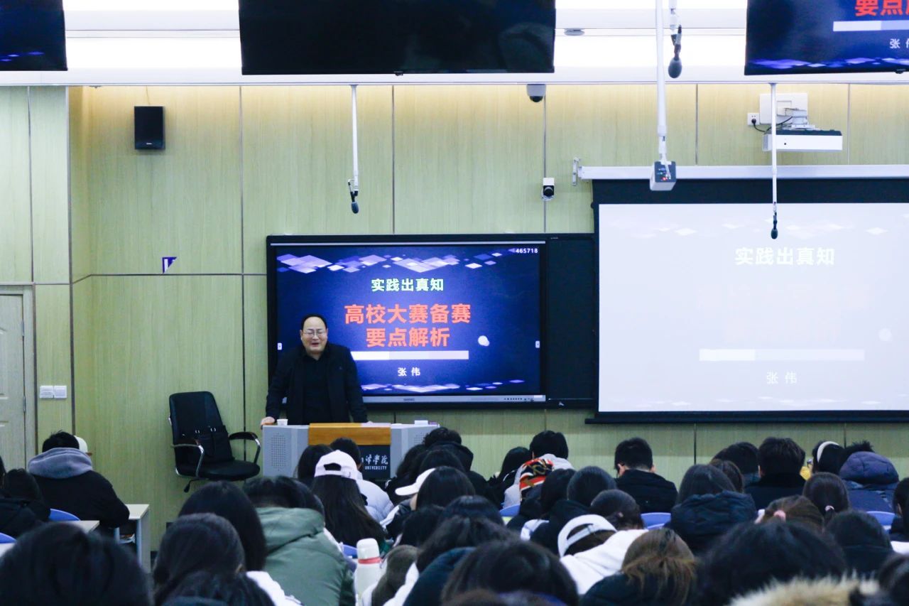 为帮助员工深入理解有关高校各类老员工创新创业大赛的关键要素,提升实践创新能力,增强就业竞争力,伟德bv1946官网邀请中共碑林区委、区政府专家顾问,陕西九三学社参政议政研究中心智库专家,第十四、十五届碑林区政协委员张伟,于12月10日晚在4102T教室,为全体2024级新生作了一场题为“实践出真知:高校大赛备赛要点解析”的讲座。