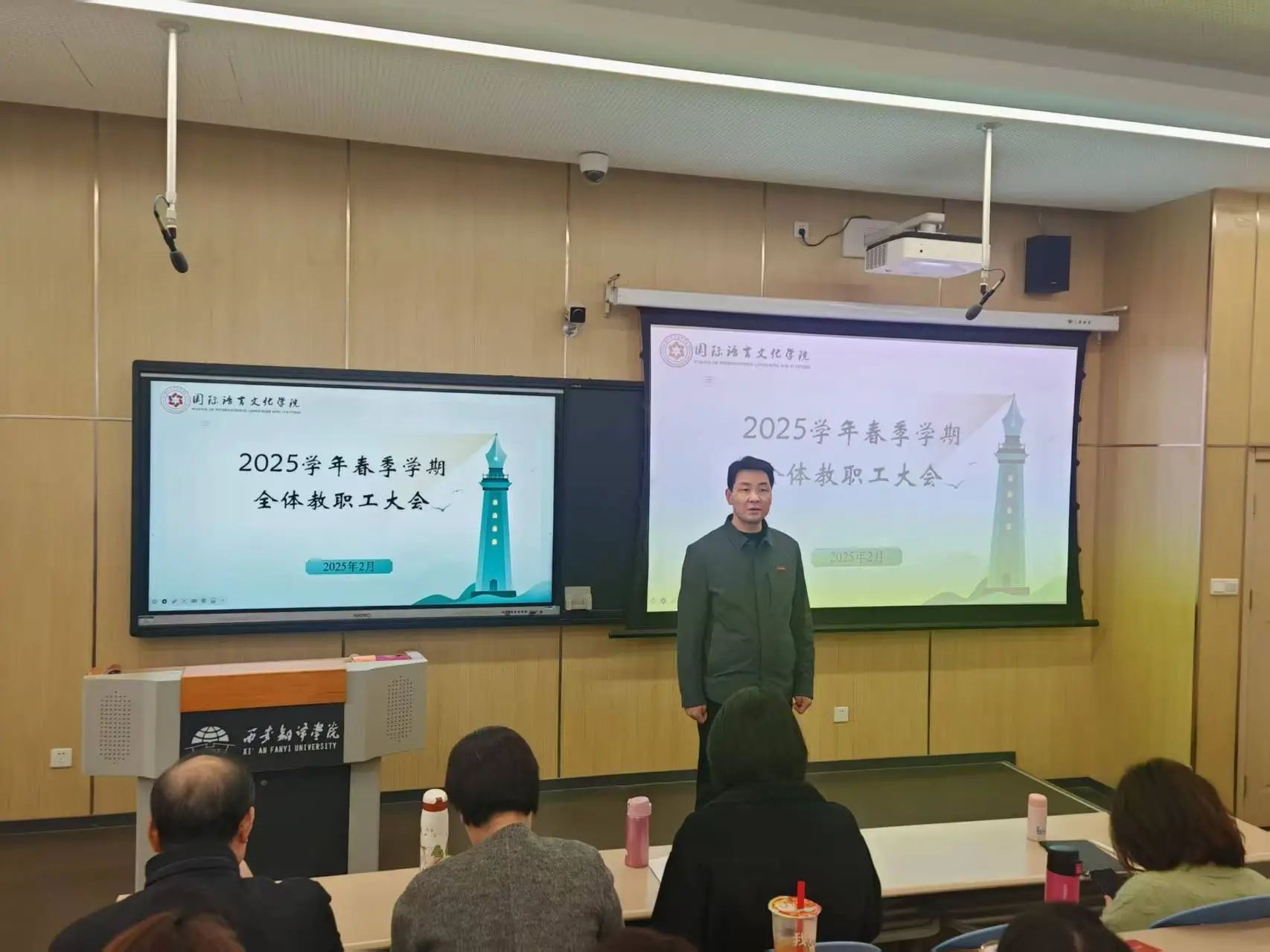 2月28日下午,公司召开2025学年春季学期全体教职工大会,旨在全面总结2024年工作,部署2025年重点工作。公司党委书记、副经理宇文永康主持会议,公司领导班子成员及全体教职工参加会议。