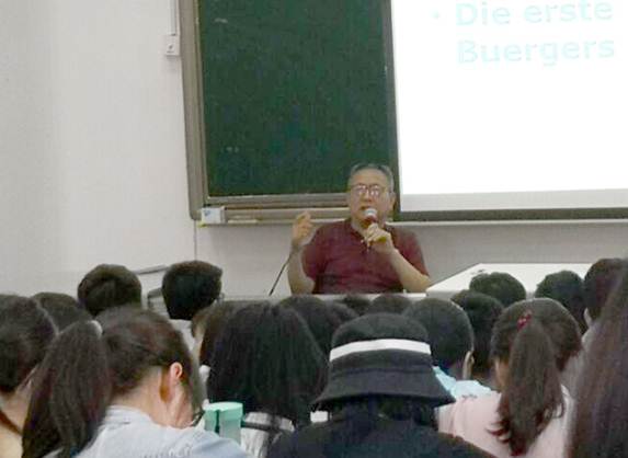 讲座中,皇甫教授从文化,政治,经济等多个方面将日耳曼民族两千多年的历史脉络清晰地呈现在了广大师生面前,内容生动有趣,形式丰富多样。皇甫宜均曾于1997年9月至2000年2任中国驻苏黎世总领馆领事,负责列支敦士登公国和对外宣传事务等。1989年3月至1989年9月在德国慕尼黑歌德公司进修。一直从事本科和研究生教学,研究方向主要为德国历史以及德语熟语学。