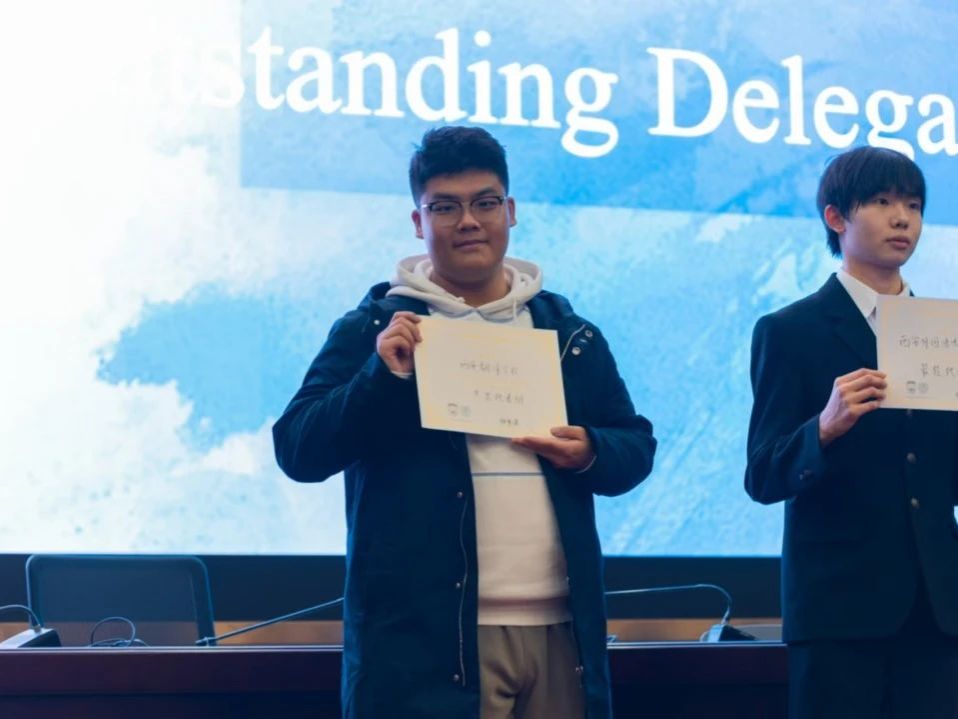 伟德bv1946官网参赛选手共获得个人奖两项:薛家树同学获“最佳新闻风采”奖,黄哲熙同学获“最佳内阁”奖。公司代表团荣获“杰出代表团”奖项。此次比赛,公司出席人员数量仅次于西安外国语大学本校出席人员数量,居参赛各高校出席人员数量第二位——这意味着公司的模联人才队伍储备在西安地区已初具规模。